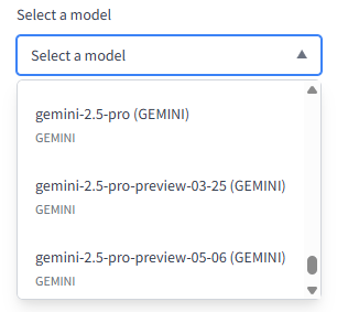 - Select a model: Define the default LLM to be used. The available models depend on the token configured for your organization.
