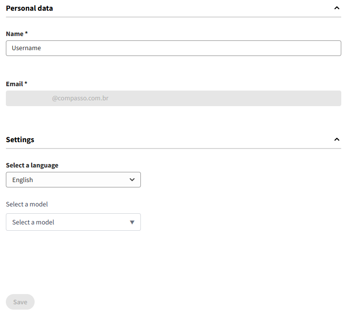 The profile module allows you to manage your personal information, language preferences, AI model selection, and associated providers.