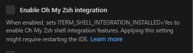 Faz com que o AI Cockpit Reasoning funcione melhor com o popular framework de personalização de shell Oh My Zsh. Ative isso se você usa o Oh My Zsh и tiver problemas com o terminal.