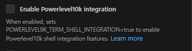 - A ausência de marcadores de integração do shell pode exigir o ajuste das configurações para contornar possíveis bugs upstream ou problemas de configuração da estação de trabalho local relacionados à inicialização do shell e ao carregamento de ganchos especiais de integração do shell pelo VSCode