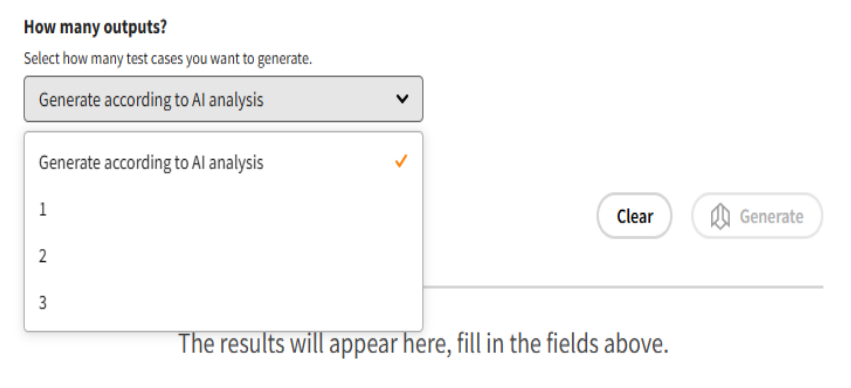 Defina o Número de Saídas: Escolha quantas variações de casos de teste você deseja que a IA gere.