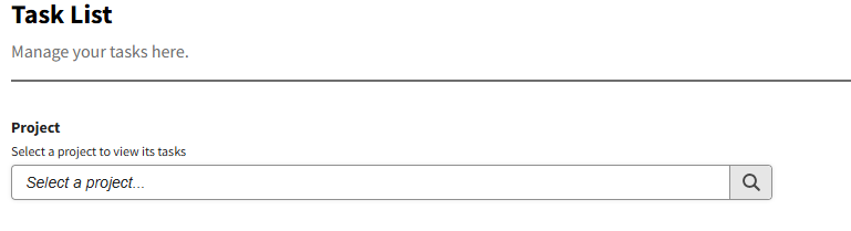 Navegação para a página de listagem de tarefas mostrando seleção de projeto