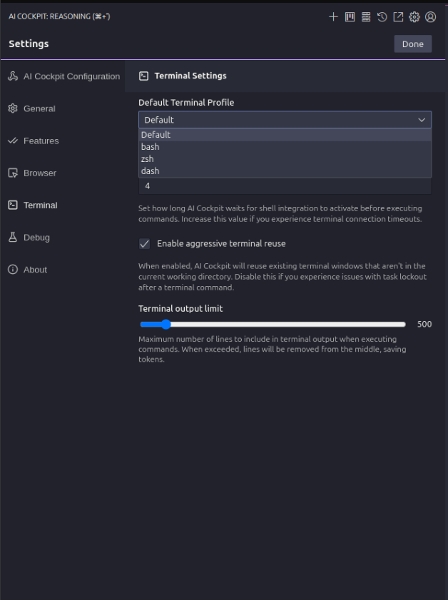 You can resolve this by configuring your default terminal profile within AI Cockpit's settings in VS Code.
